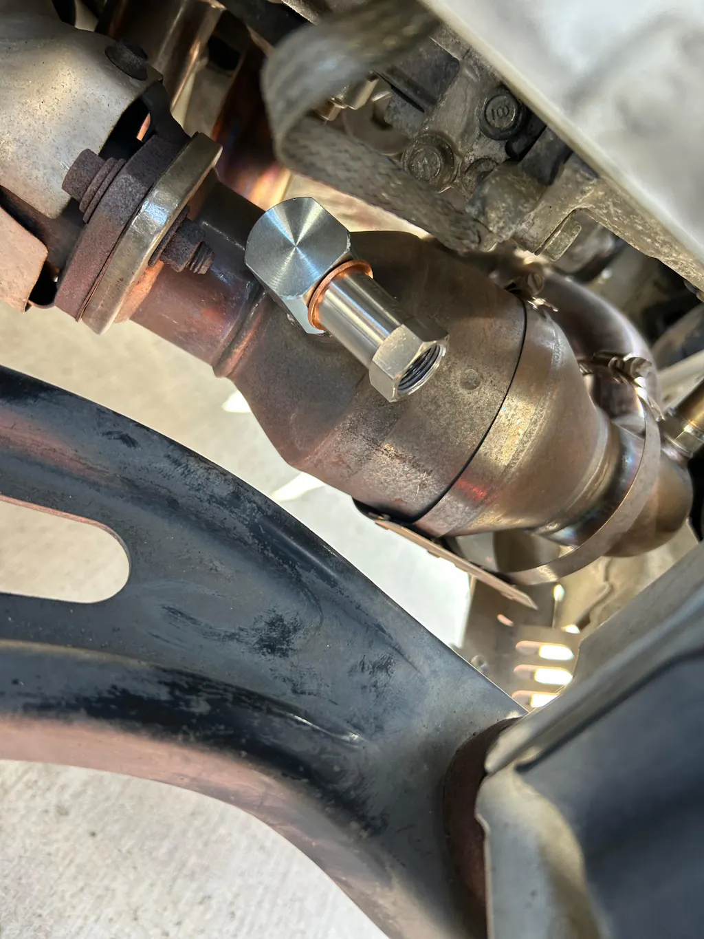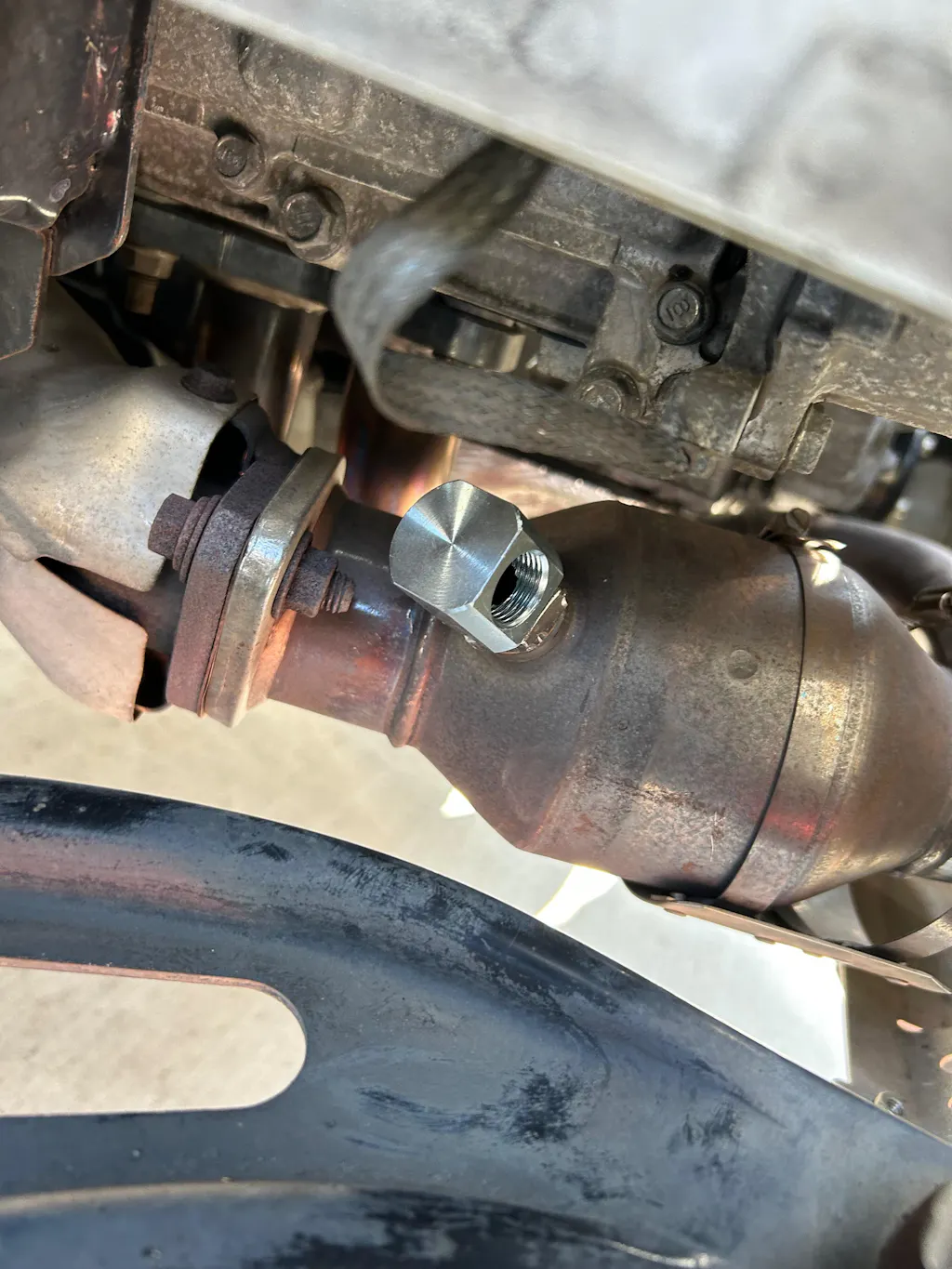 ④組み合わせたパーツを純正O2センサー取り付け穴へ取り付けてください。